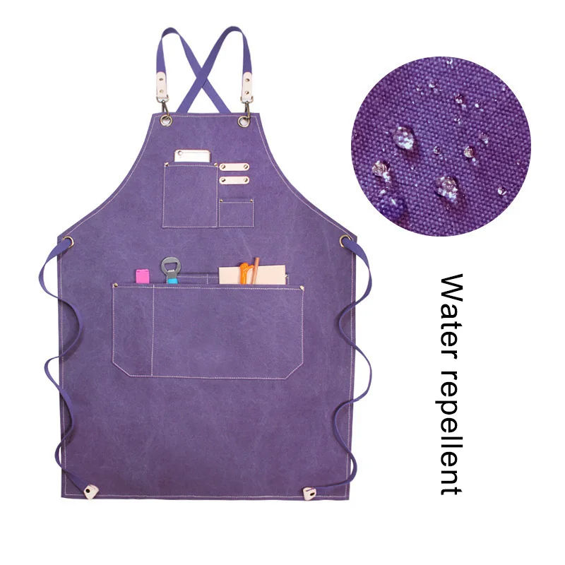 Venta al por mayor diseño de logotipo personalizado de lona de algodón resistente delantal de cocina impermeable reutilizable hogar Cocina
