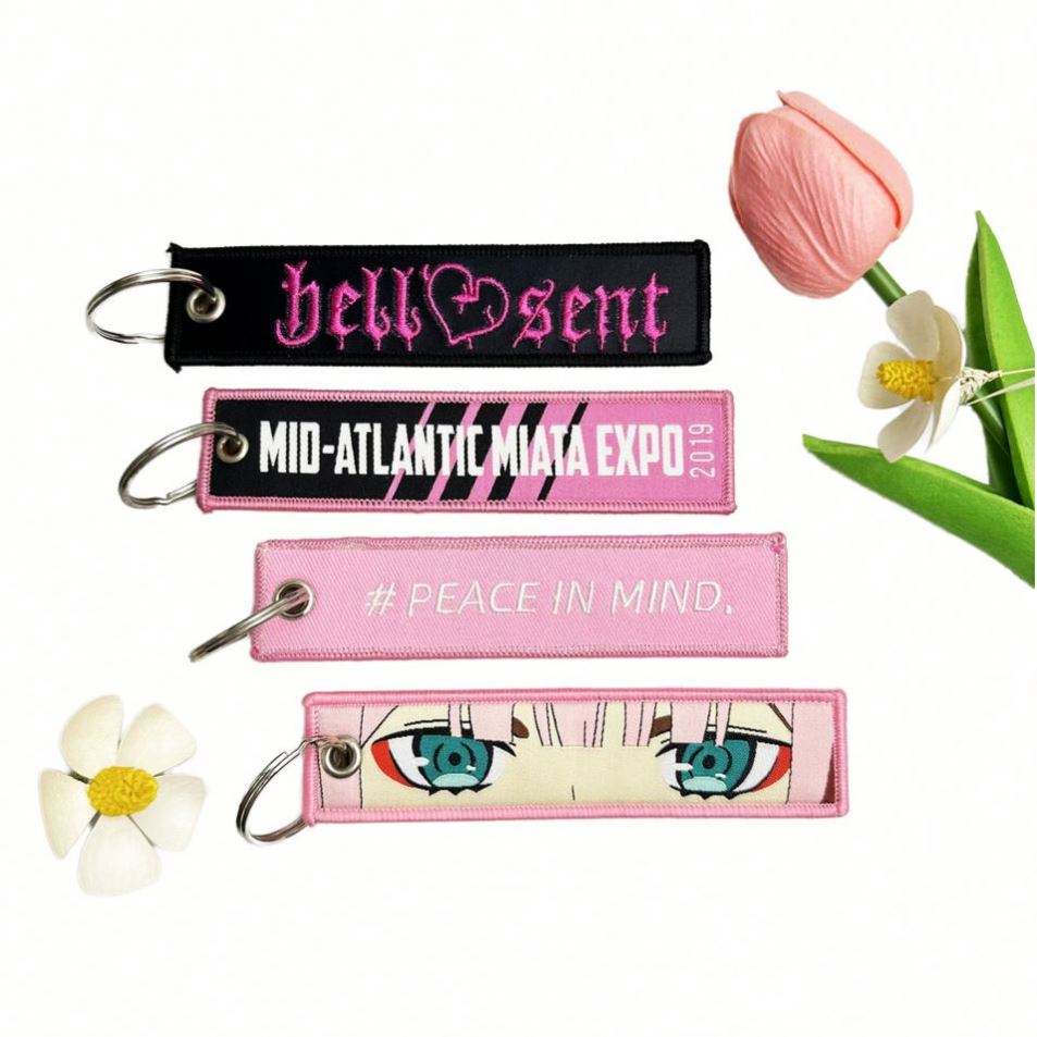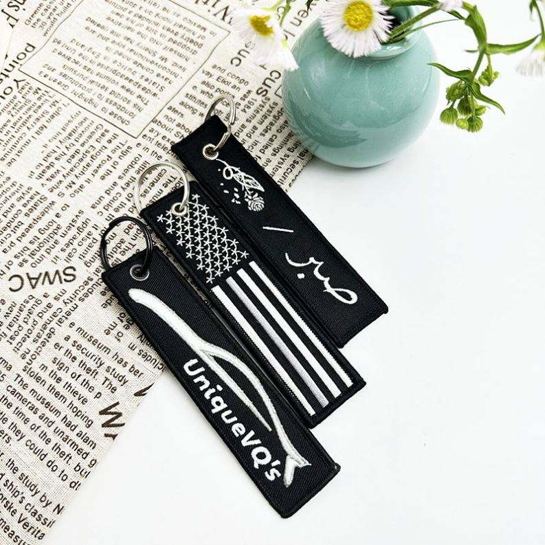 Etiquetas de Llavero Personalizadas al por Mayor con Logotipo Bordado, Diseño de Etiquetas Jet para Llaveros, Llaveros de Tela Personalizables