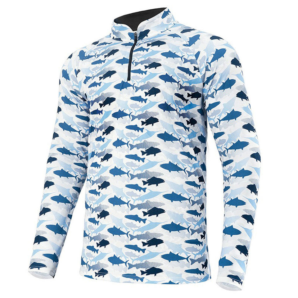 Venta al por mayor logotipo personalizado patrón de sublimación completa de secado rápido de talla grande Anti UV manga larga ropa de pesca de los hombres
