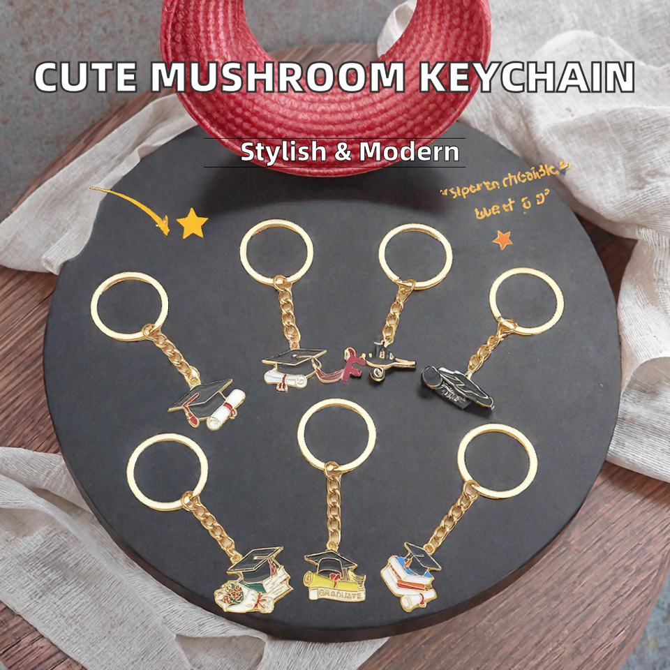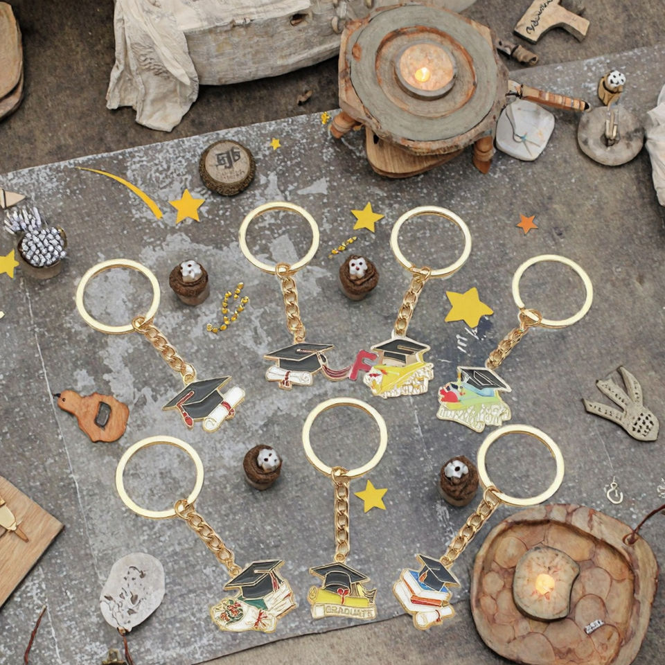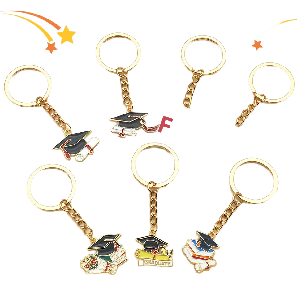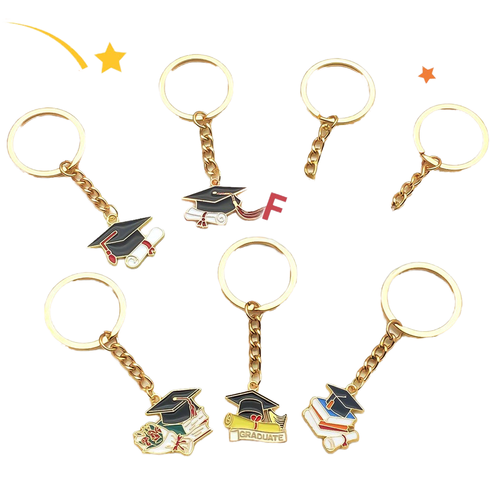 Llavero de recuerdo de graduación con logotipo personalizado al por mayor, llavero esmaltado con gorro de graduado y libro para fiestas