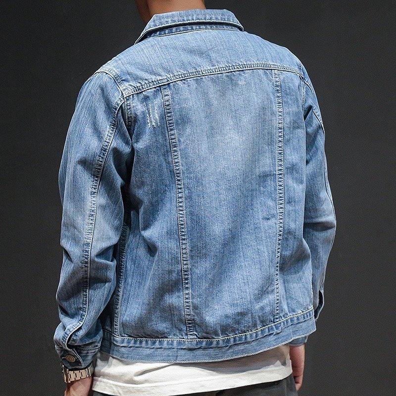 Chaqueta Vaquera Azul Desgastada para Hombre, Personalizada con Logotipo, de Alta Calidad, Estilo Clásico, 2026