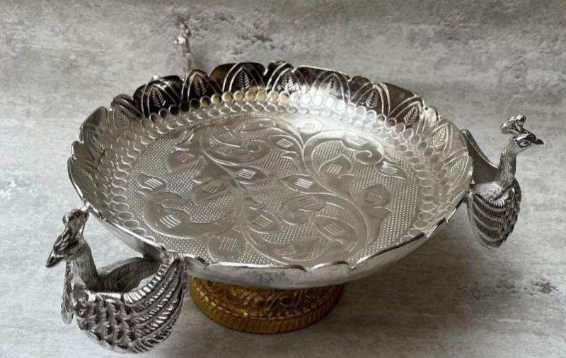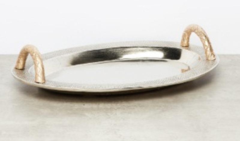 Bandeja de Servicio de Metal Martillado de Lujo con Asa de Elefante, Centro de Mesa Decorativo para el Hogar, Comedor, Hotel, Decoración de Bodas