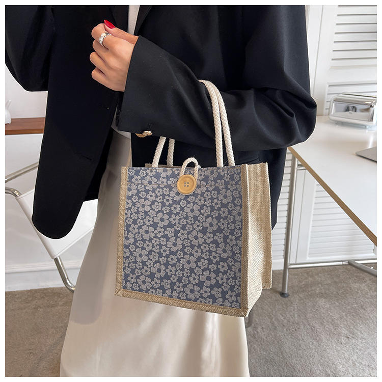 Bolsa de Compras de Lona con Estampado Floral, Personalizada con Logotipo, Gran Capacidad, Económica, para Regalos Promocionales