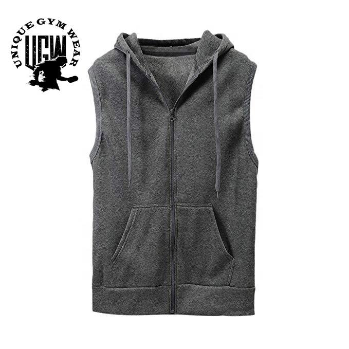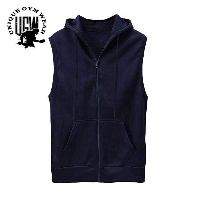 Sudadera con capucha de algodón de media manga para hombre con logotipo personalizado al por mayor Sudadera con capucha en blanco de entrenamiento sin mangas de moda impresión de calidad OEM