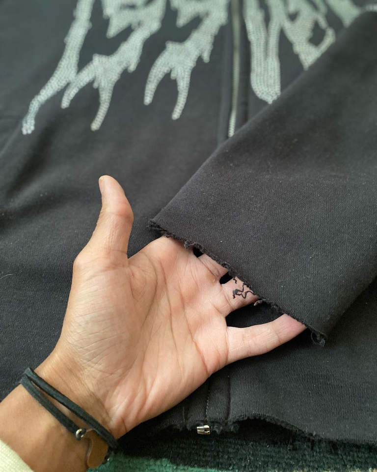 Sudadera con capucha unisex con cremallera completa recortada con diamantes de imitación y logotipo personalizado al por mayor