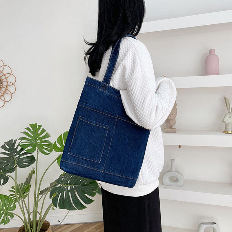Bolso de tela vaquera sencillo con un solo hombro y logotipo personalizado al por mayor para mujeres y niñas, bolso vaquero informal con cremallera para estudiantes