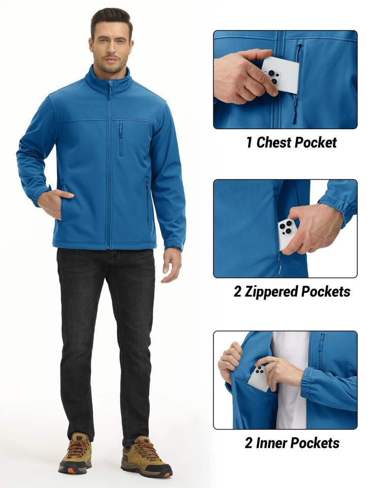 Chaqueta de invierno softshell con logotipo personalizado al por mayor para hombre cortavientos con tecnología impermeable cierre de cremallera de longitud larga