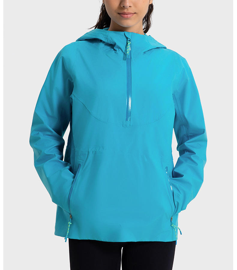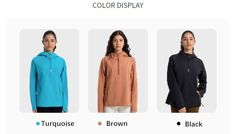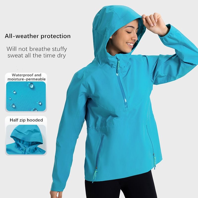 Chaqueta de jersey con capucha y media cremallera a prueba de viento y logotipo personalizado para mujer, ropa deportiva al por mayor, cortavientos, técnica de lavado ácido, bordado 3D
