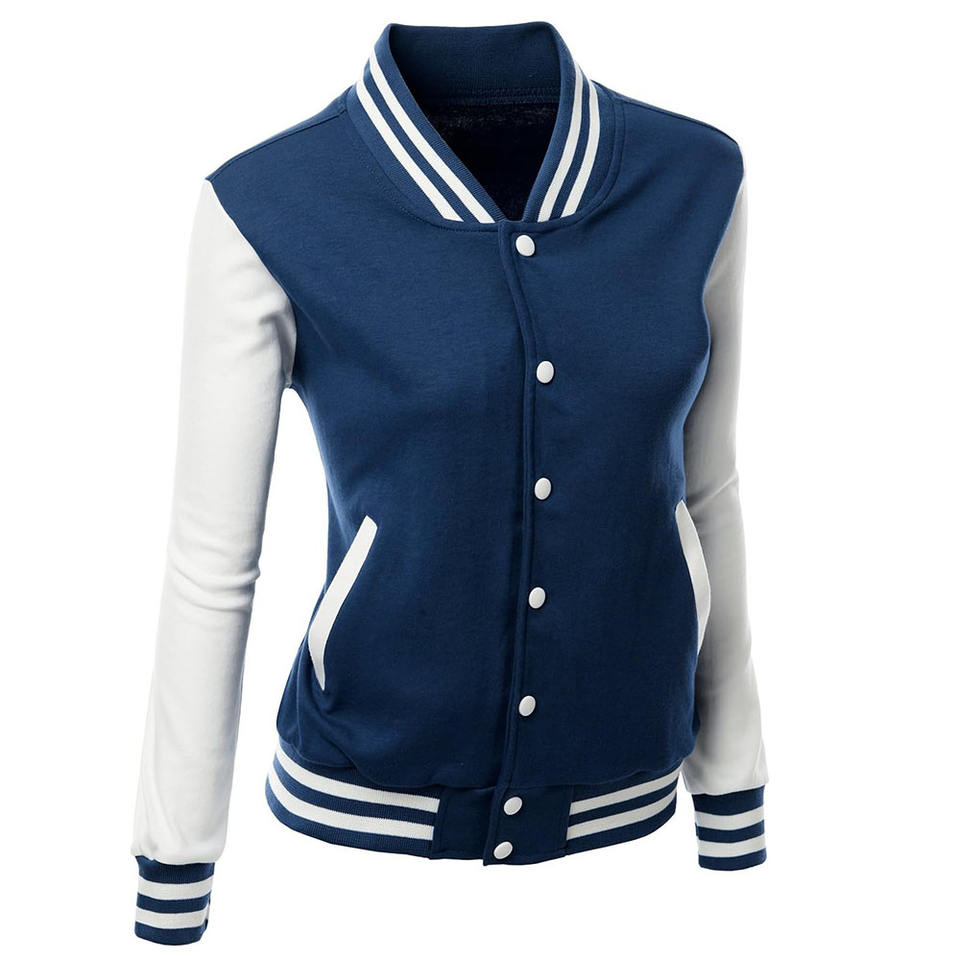Chaqueta universitaria de mujer con logotipo personalizado al por mayor, jersey de invierno de mujer de talla grande, chaqueta universitaria de lana, ropa informal para mujer