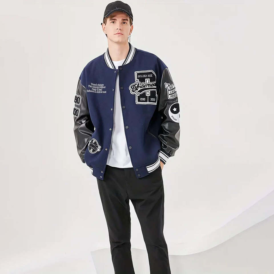Venta al por mayor chaquetas de invierno del equipo de béisbol de la escuela secundaria hechas a medida lienzo Letterman University Stand Stitch Número de alta calidad