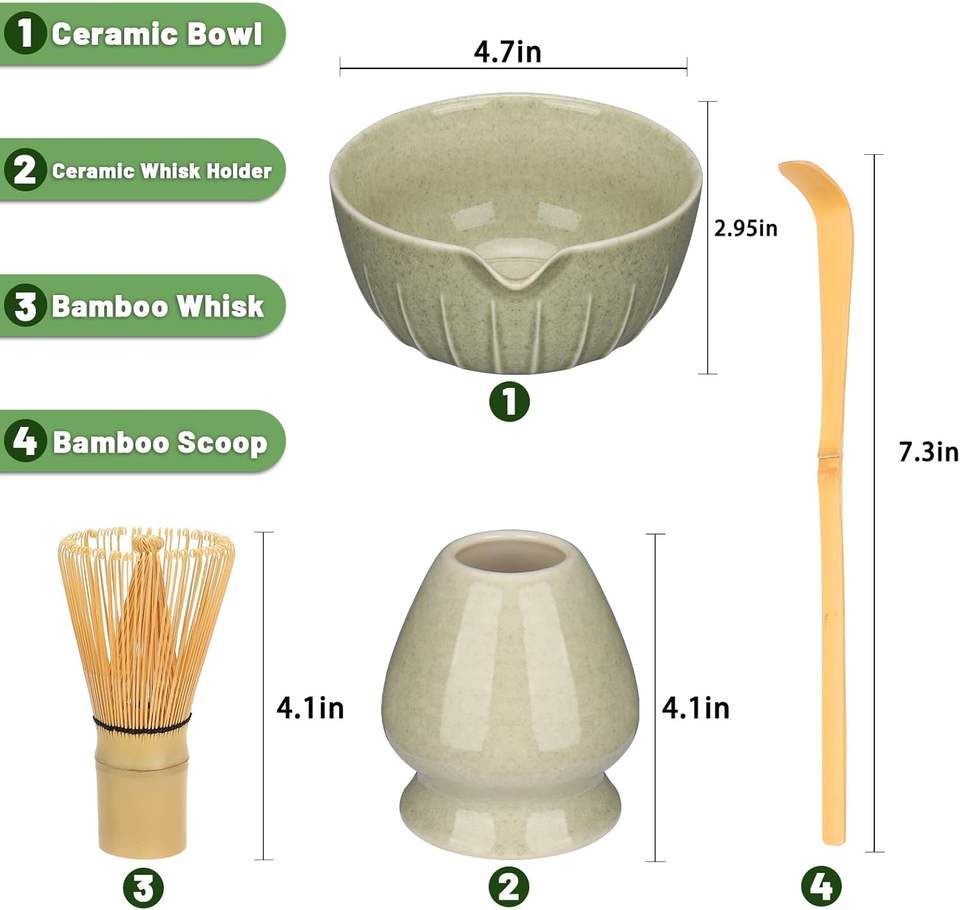 Juego de regalo Matcha personalizado al por mayor, embalaje y accesorios, batidor de bambú, cuenco de cerámica, juego de batidor Matcha para herramientas de té