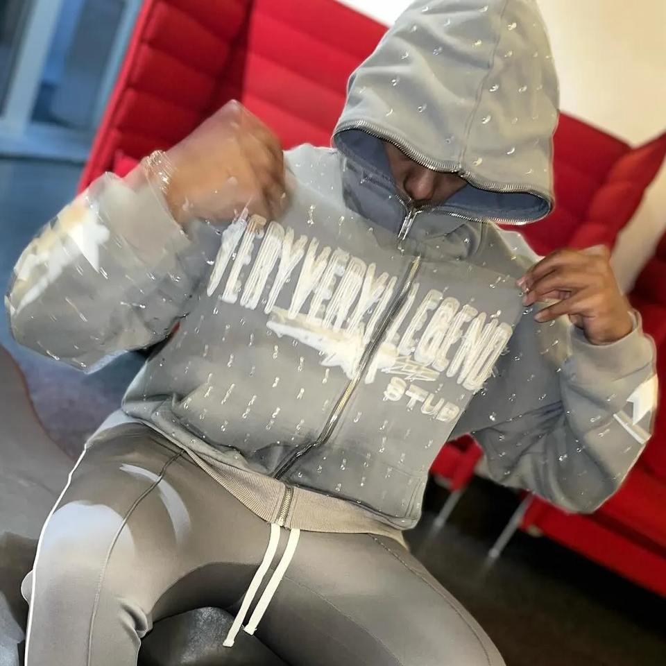 Product name:Acid Wash Rhinestone Pullover Hoodie For Men
