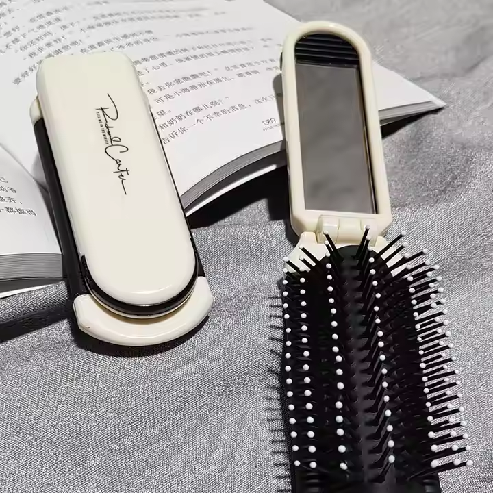 Al por mayor, peine plegable mini personalizado con espejo de maquillaje, diseño de dibujos animados bonito, mango de plástico, cepillo para el cabello plegable para peine de cojín de aire