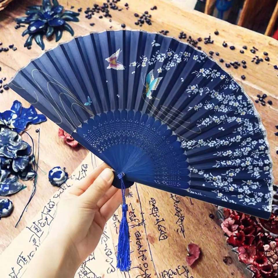 Ventiladores de Seda Mini Personalizados al por Mayor, Plegables a Mano, Estilo Arte Popular con Técnica Pintada, de Bambú Portátil para Decoración del Hogar