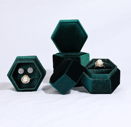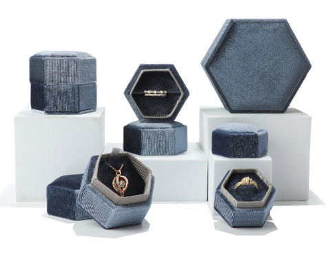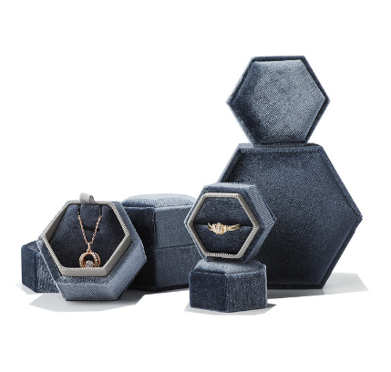 Caja de Joyería de Terciopelo Mini Personalizada al por Mayor – Empaque Hexagonal para Regalo de Collar o Colgante con Logotipo Impreso