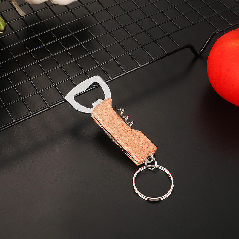 Sacacorchos de metal inoxidable multifunción personalizado al por mayor con abridor de botellas de madera, logotipo, fácil de usar, abridor manual de vino tinto con mango y caja.
