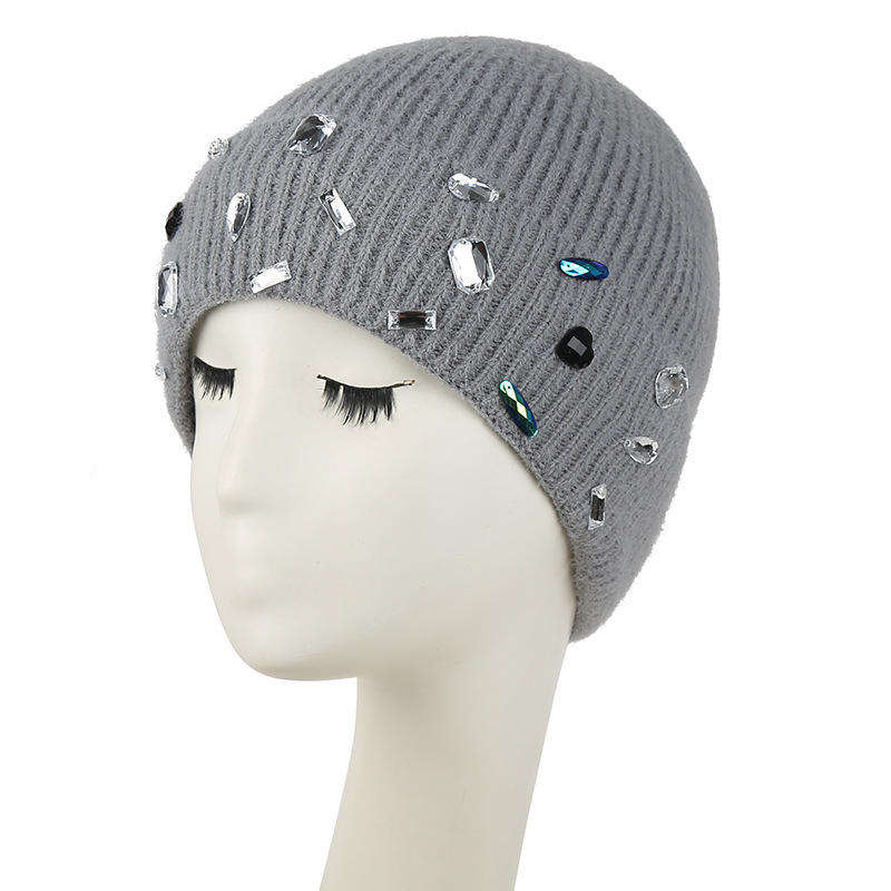 Gorros de Punto Acrílicos Multicolores Personalizados al por Mayor, Gorros de Cristal con Pedrería, Gorros de Invierno para Mujer