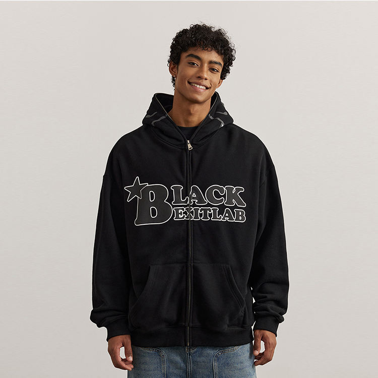 Sudadera con capucha para hombre, extragrande, con cremallera completa, de poliéster/algodón, forrada y transpirable, para otoño, con diseño de serigrafía en relieve, venta al por mayor y personalizada