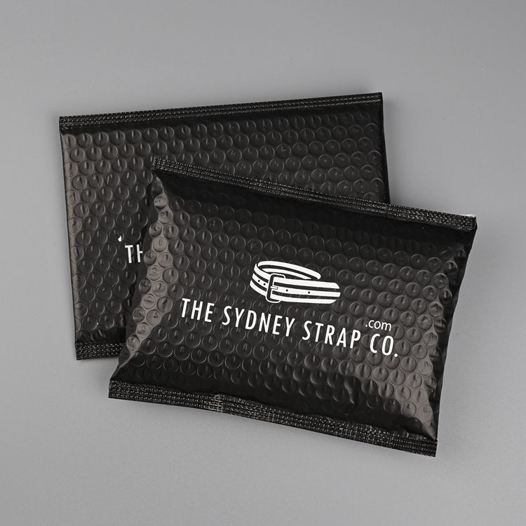 Venta al por mayor sobres acolchados personalizados impresos en negro mate, mailers burbuja con logo para envío de ropa