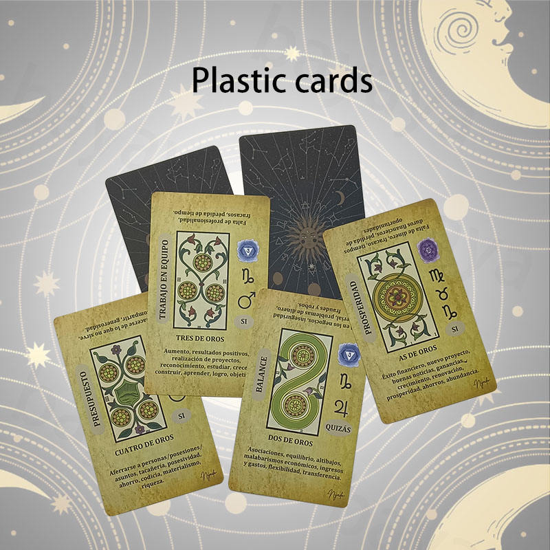Carta de Tarot de plástico resistente a los arañazos resistente al agua de alta calidad con diseño personalizado al por mayor con caja de cajón