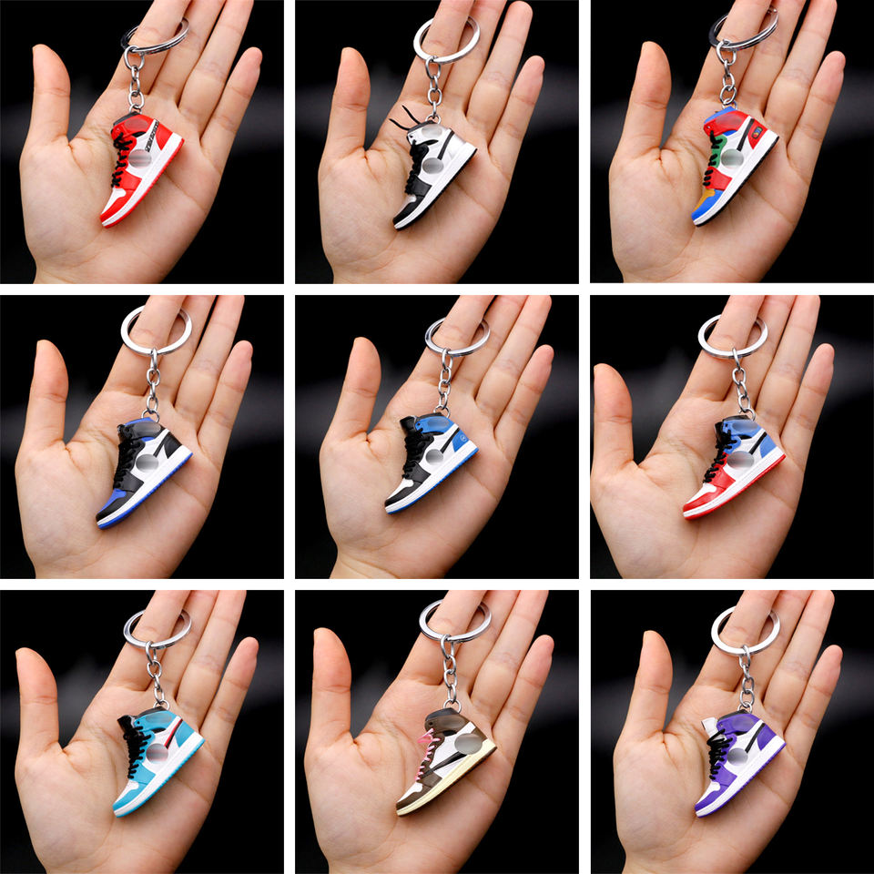 Lote de llaveros personalizados de plástico PVC y goma con diseños de tenis, baloncesto y zapatillas 3D, ideales para venta al por mayor.