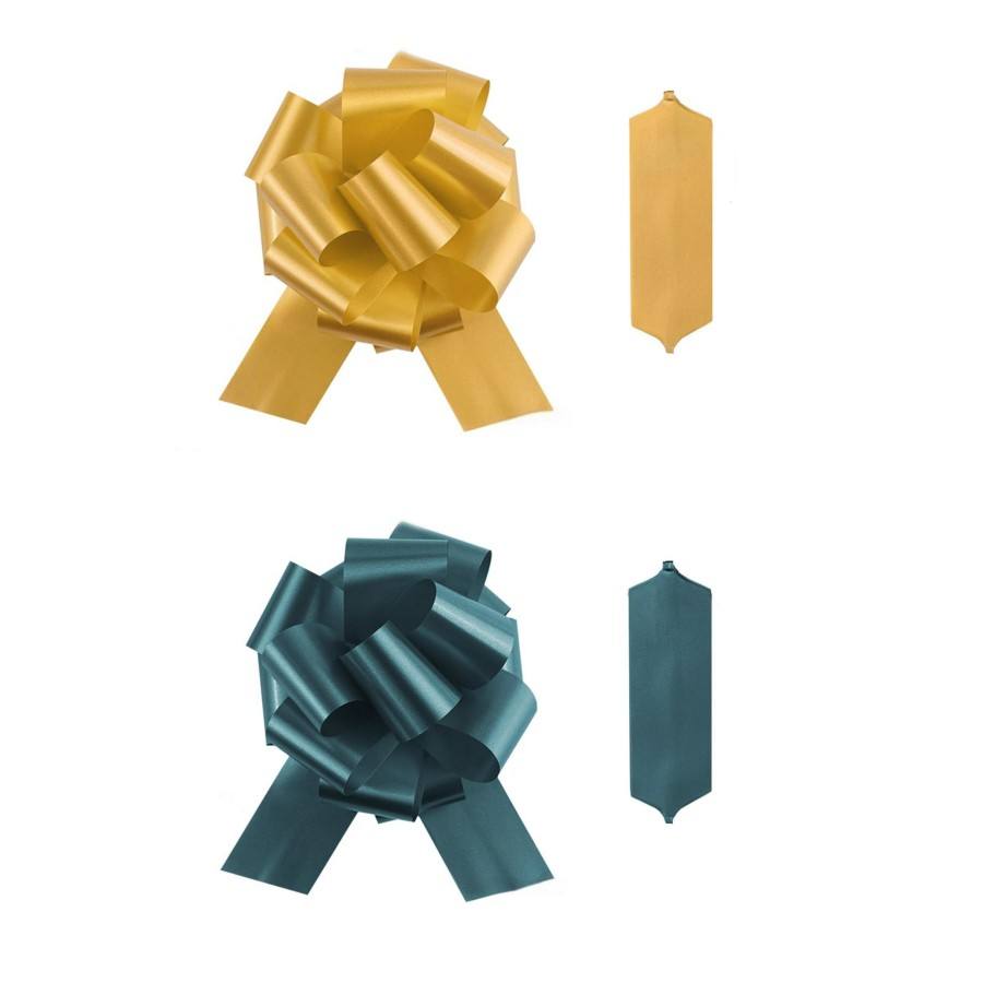 Lazo de plástico personalizado al por mayor, lazo de regalo metálico de lujo con cordón para decoración navideña, regalo de boda
