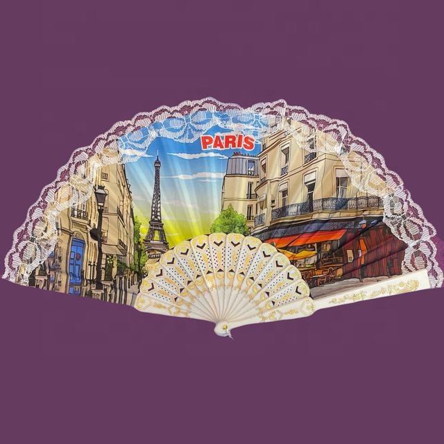 Al por mayor de encargo impresa ventilador de la mano de plástico de nylon de encaje talla plegable VENTILADOR DE LA MANO