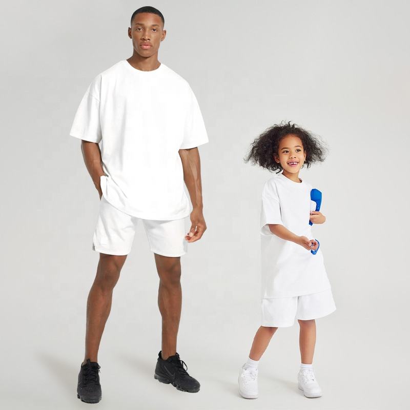 Venta al por mayor de ropa familiar de verano, Conjunto de camiseta y pantalones cortos de gran tamaño para hombre con etiqueta privada personalizada