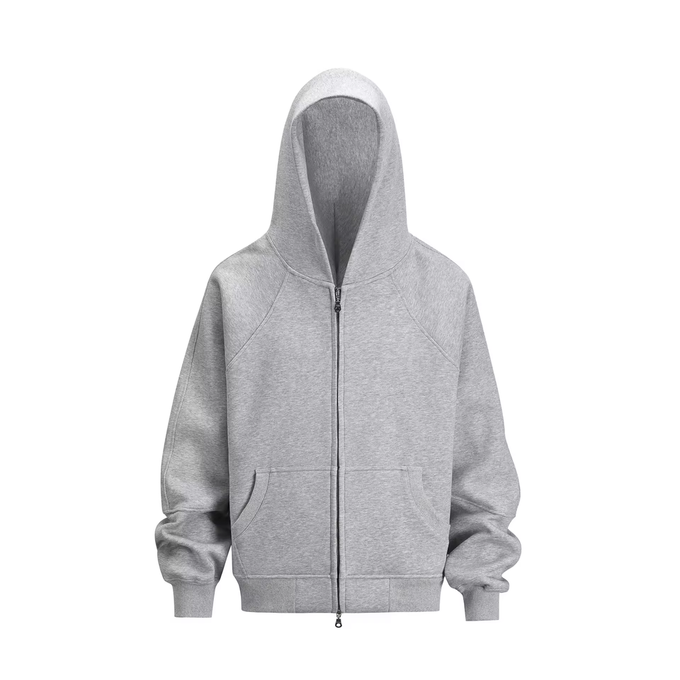 Sudadera con capucha gris color puro personalizada al por mayor estilo informal cárdigan con cremallera enmascarada sudaderas con capucha de algodón para hombre