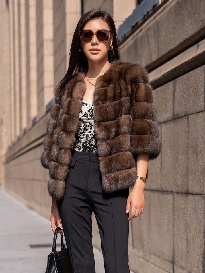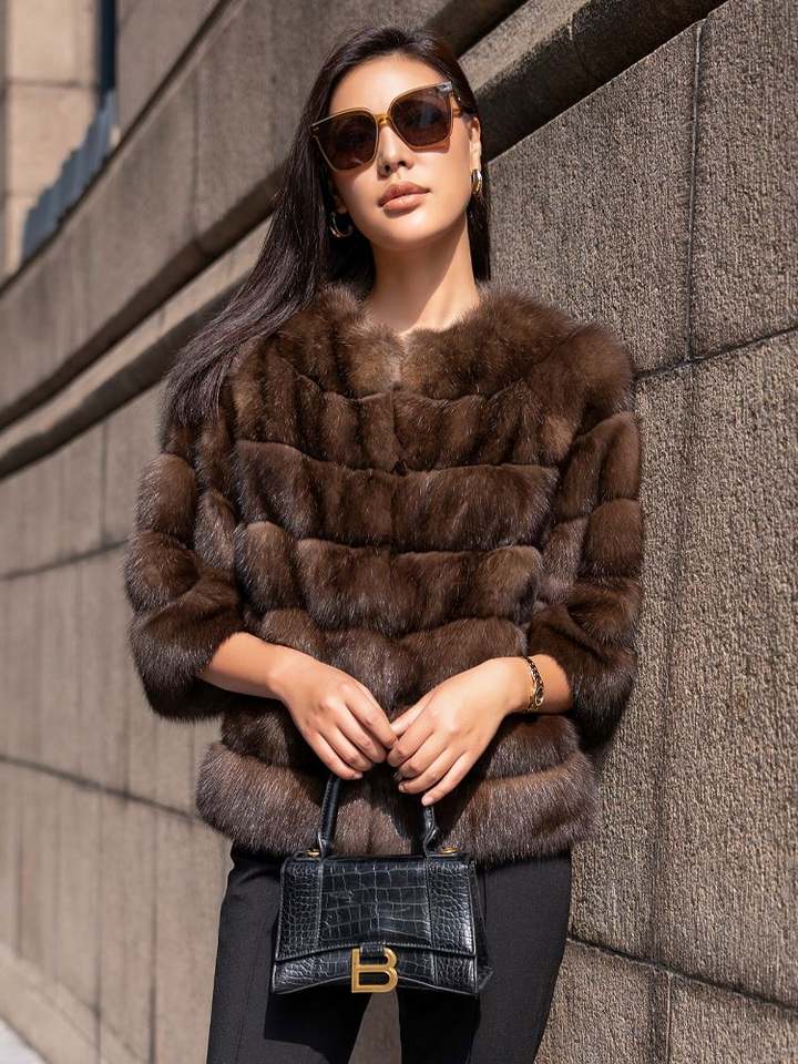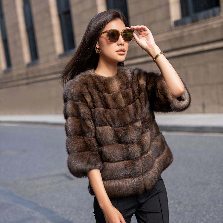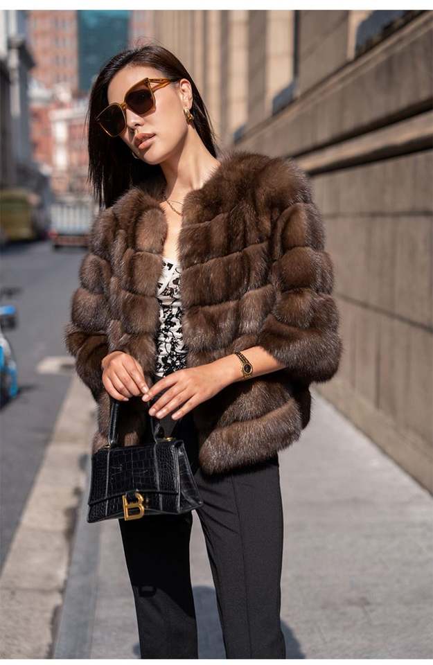 Venta al por mayor personalizado Real ruso Sable ocho mangas chaquetas de piel de invierno abrigos de piel de las mujeres