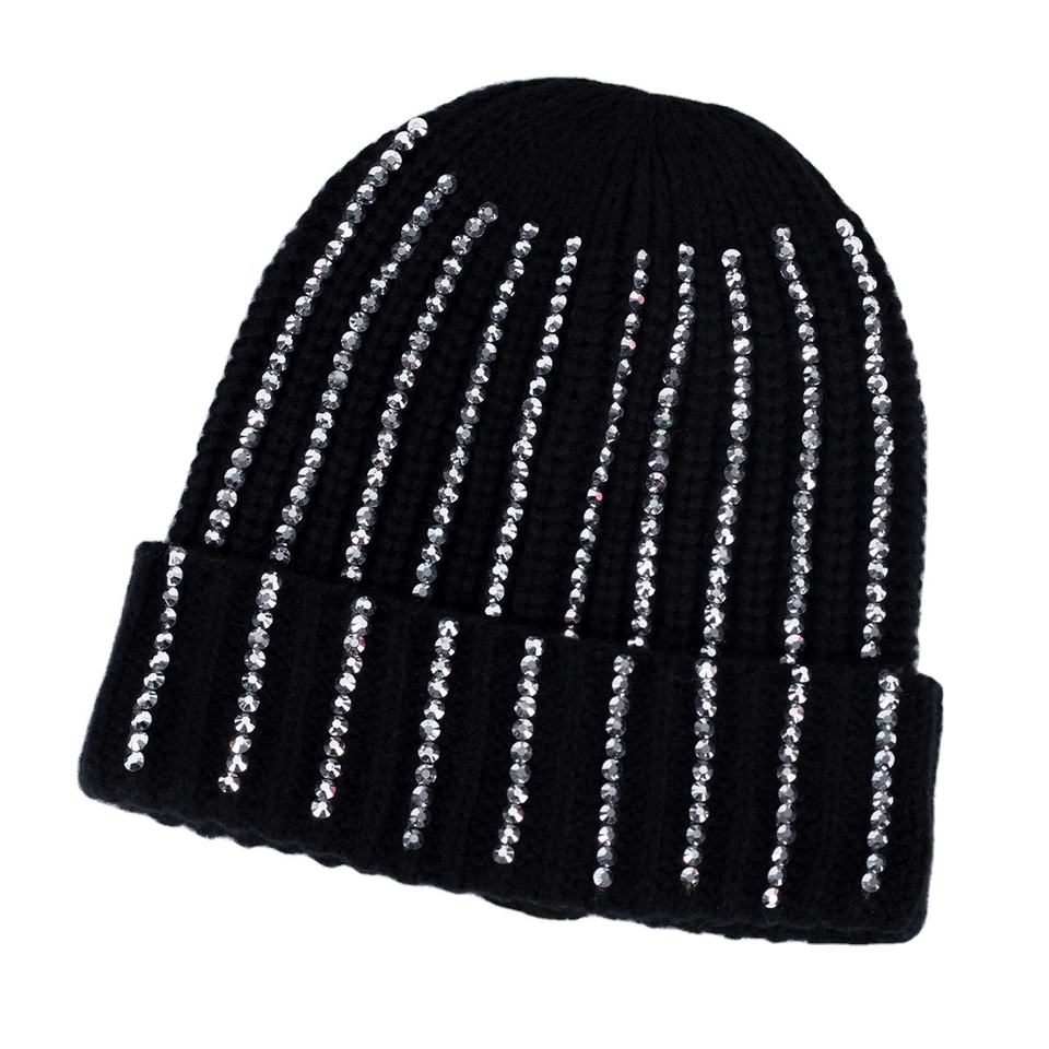 Gorros de Punto con Pedrería Personalizados al por Mayor para Mujer, Gorro Brillante de Invierno con Decoración de Cadena, Gorro Moderno con Pedrería, Proveedor con MOQ Bajo