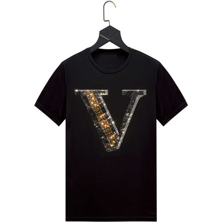 Camisetas Personalizadas al por Mayor con Pedrería para Hombre, 100% Algodón, Tejido de Punto, Diseño Sólido, Manga Corta, Logotipo Personalizado, Servicios OEM