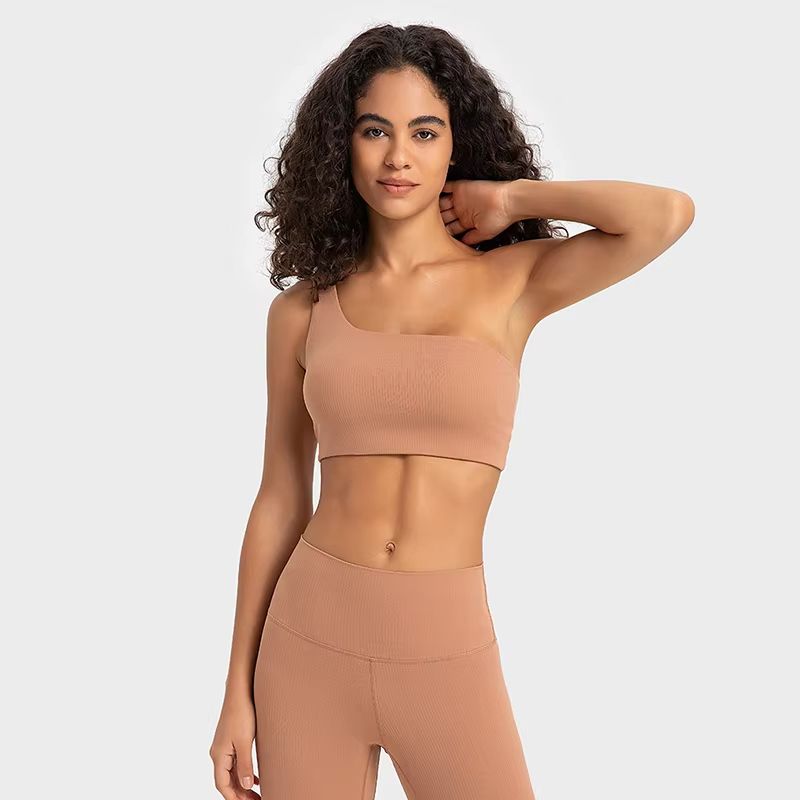 Top Deportivo Sexy de un Solo Hombro con Diseño Acanalado Personalizado al por Mayor, Ropa Deportiva para Mujer, para Yoga y Ejercicio al Aire Libre