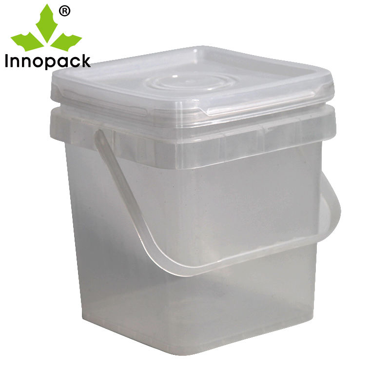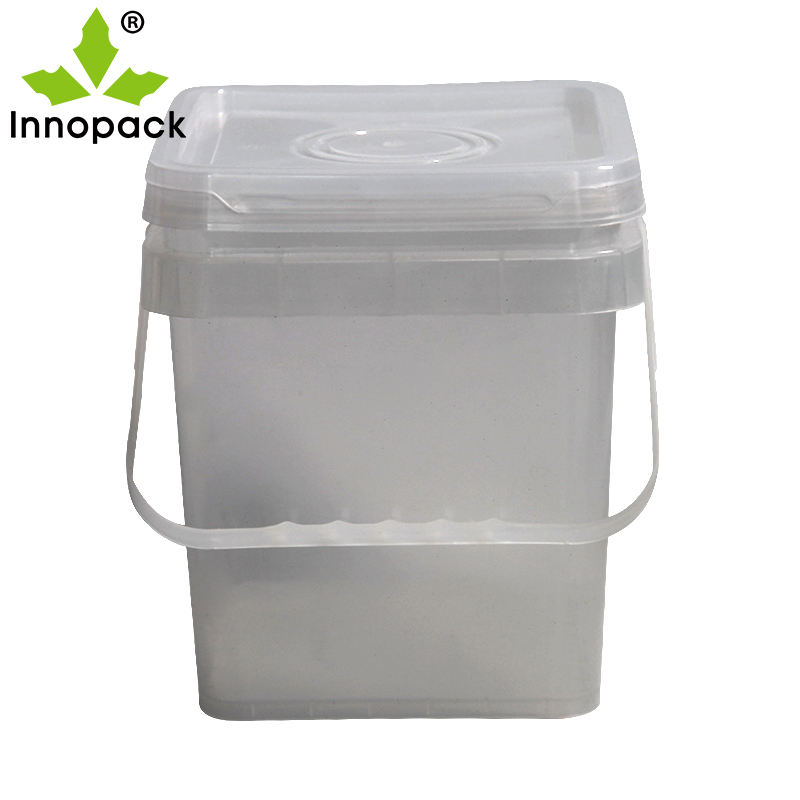 Mango y tapa:Cubo de plástico transparente emparejado
