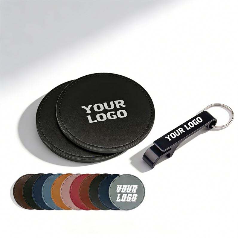 Posavasos de Cuero PU Personalizados al por Mayor con Logotipo Bordado, Regalo Promocional para Restaurantes, Hoteles y Negocios