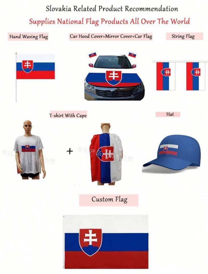 Bandera de Coche de Eslovaquia Portátil, Impermeable, de Poliéster, con Impresión Digital Personalizada al por Mayor, con Asta y Clips