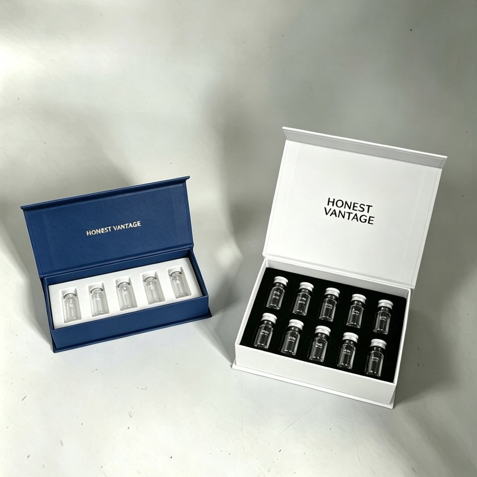 Venta al por mayor de envases personalizados para viales pequeños de 3 ml, viales para péptidos de 2 ml/5 ml/10 ml, caja de regalo para 5 viales, etiqueta para viales y caja, bandeja de plástico EVA