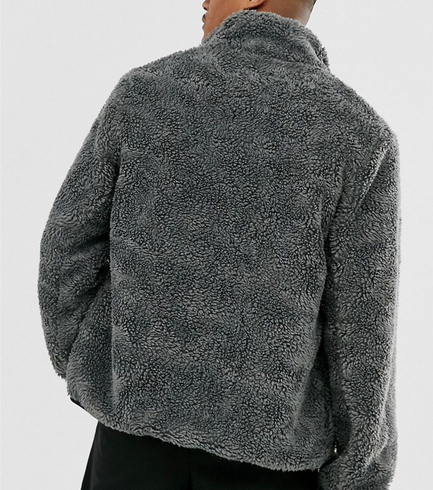 Chaqueta de Invierno de Forro Polar Sherpa con Cremallera de Color Sólido Personalizada al por Mayor, Chaqueta de Moda Urbana para Hombre