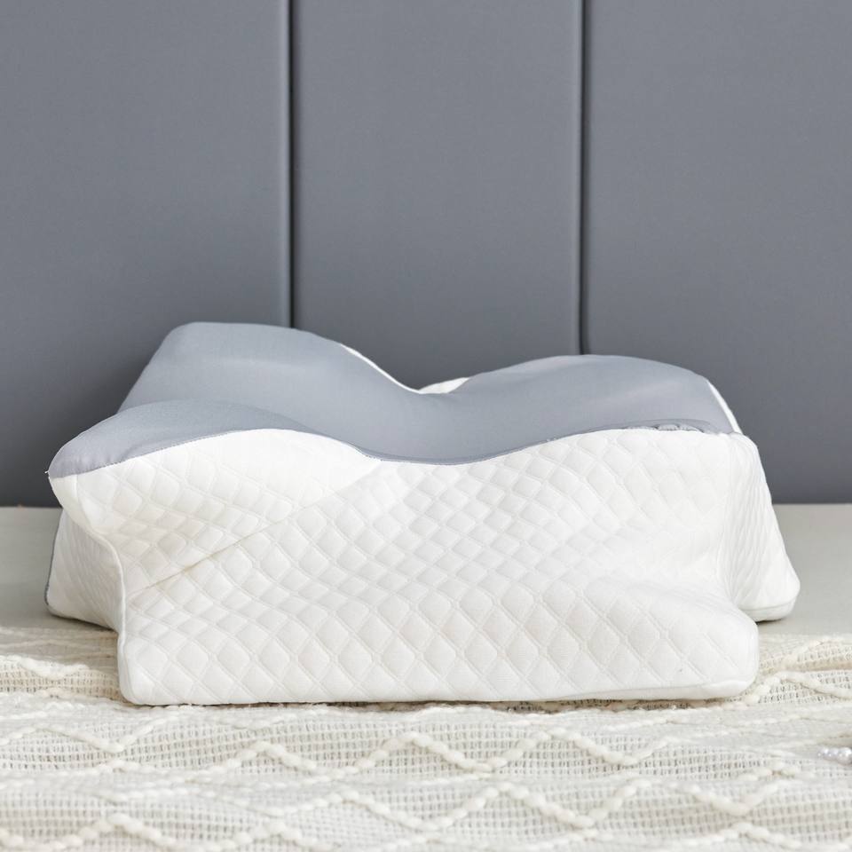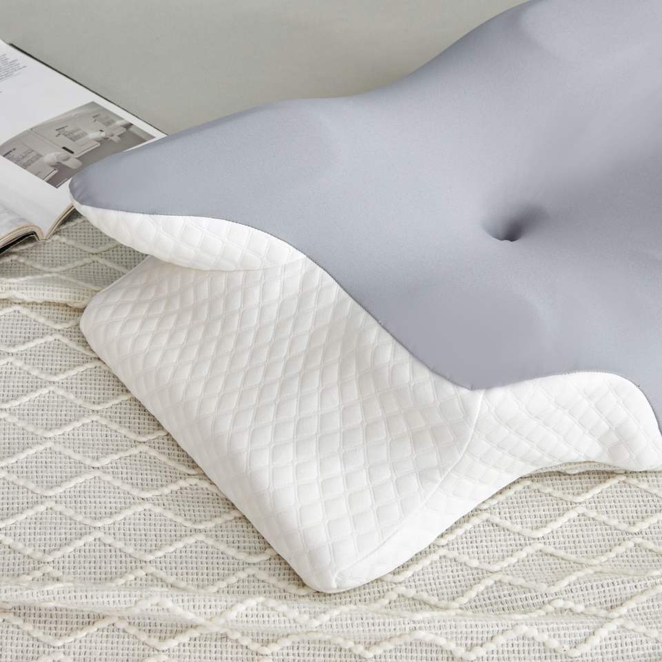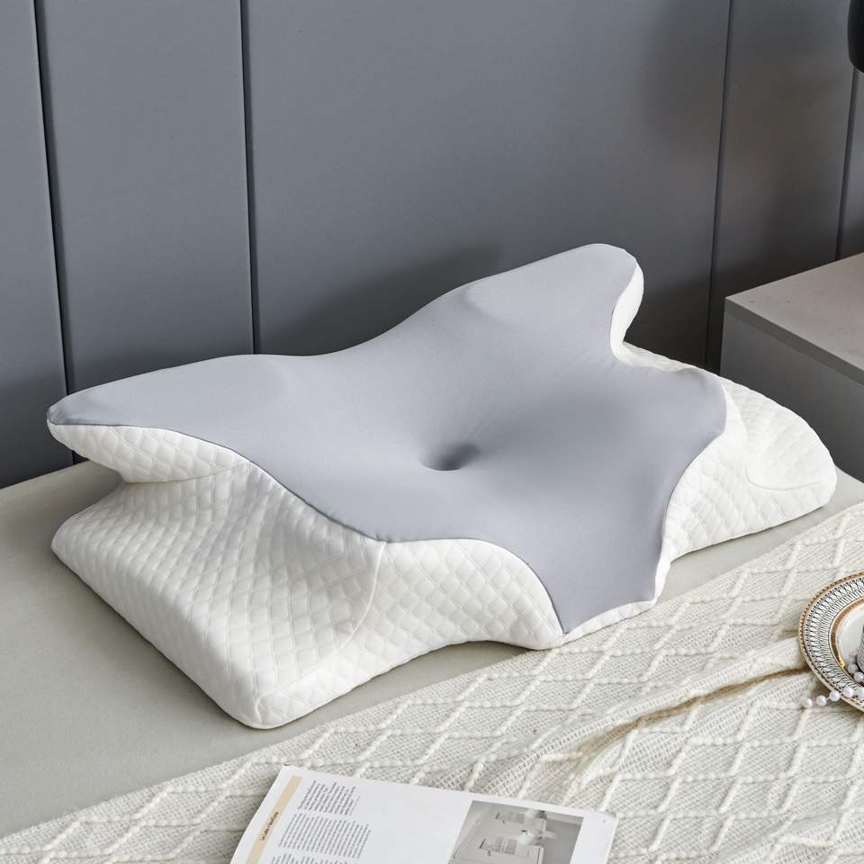 Almohada de cuello de mariposa de espuma viscoelástica con patrón sin fin sólido personalizado al por mayor, compresa terapéutica cervical para sueño profundo, hoteles embalados