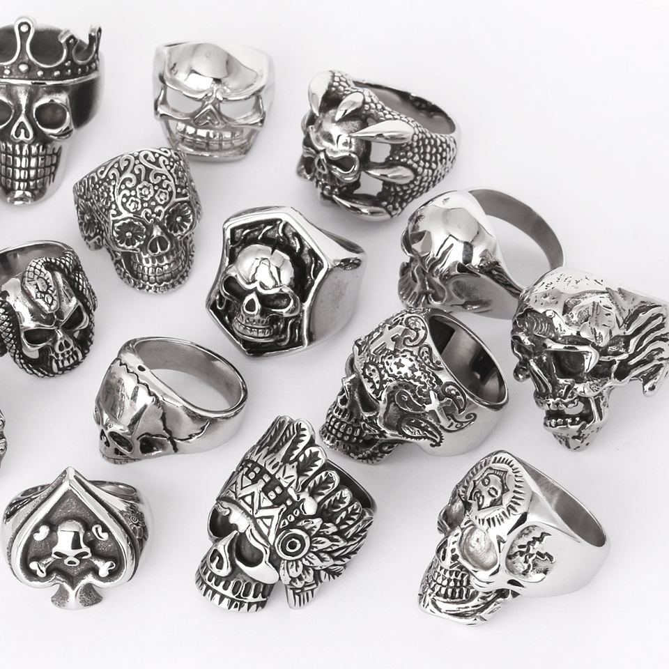 Anillo de Dedo Vintage Punk Biker de Acero Inoxidable para Hombre