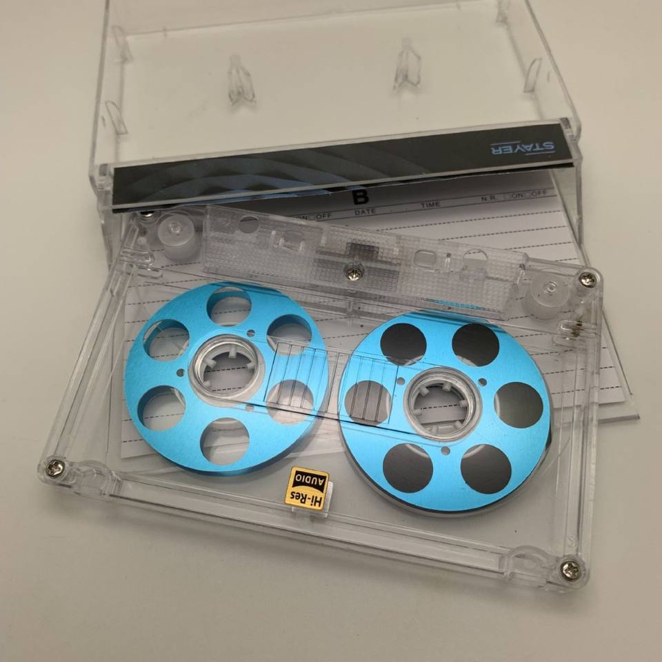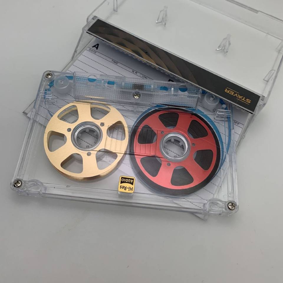 Cinta de audio al por mayor personalizada con carcasa transparente, estilo bobina abierta, con núcleo metálico, 50 minutos, Tipo I, para grabación y regalos
