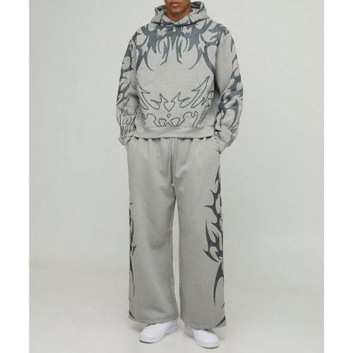 Venta al por mayor personalizado de dos piezas chándal conjunto de peso pesado Hip Hop de gran tamaño de impresión personalizada holgados chándales de algodón para los hombres
