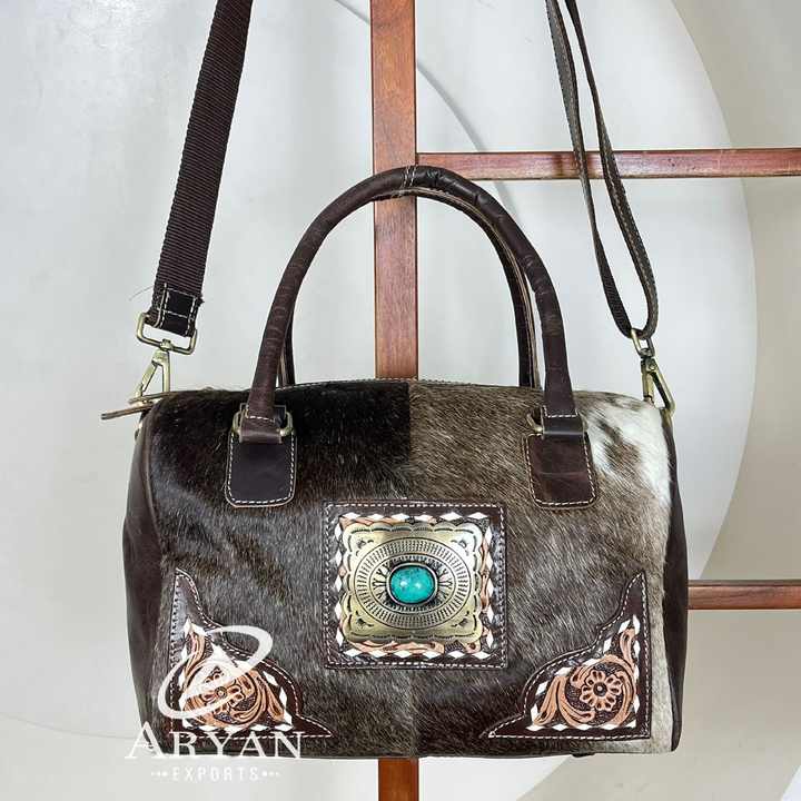 Product name:Hand Tooled Cowhide Mini Leather Duffel Bag