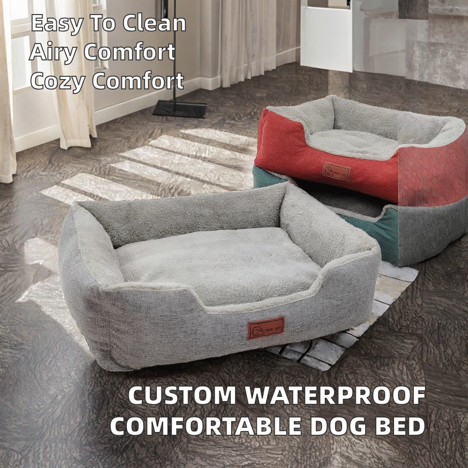 Cama para Perro Personalizada al por Mayor, Impermeable, de Forma Cuadrada, Cómoda, de Pana, Transpirable, Desmontable y Lavable