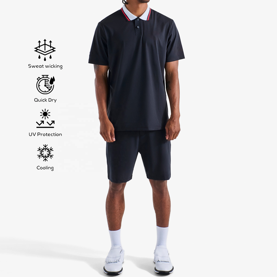 Camisetas de Golf Personalizadas al por Mayor con su Propio Diseño, Tejido Sólido, 85% Poliéster, 15% Elastano, de Secado Rápido para Hombre, Fabricante