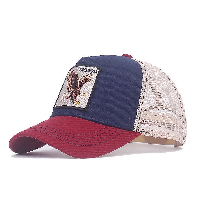 Venta al por mayor - gorra de béisbol personalizable con parche animal bordado, malla combinada por color, gorra con visera para exterior verano con logo/personaje