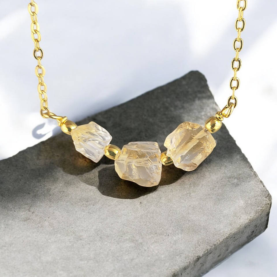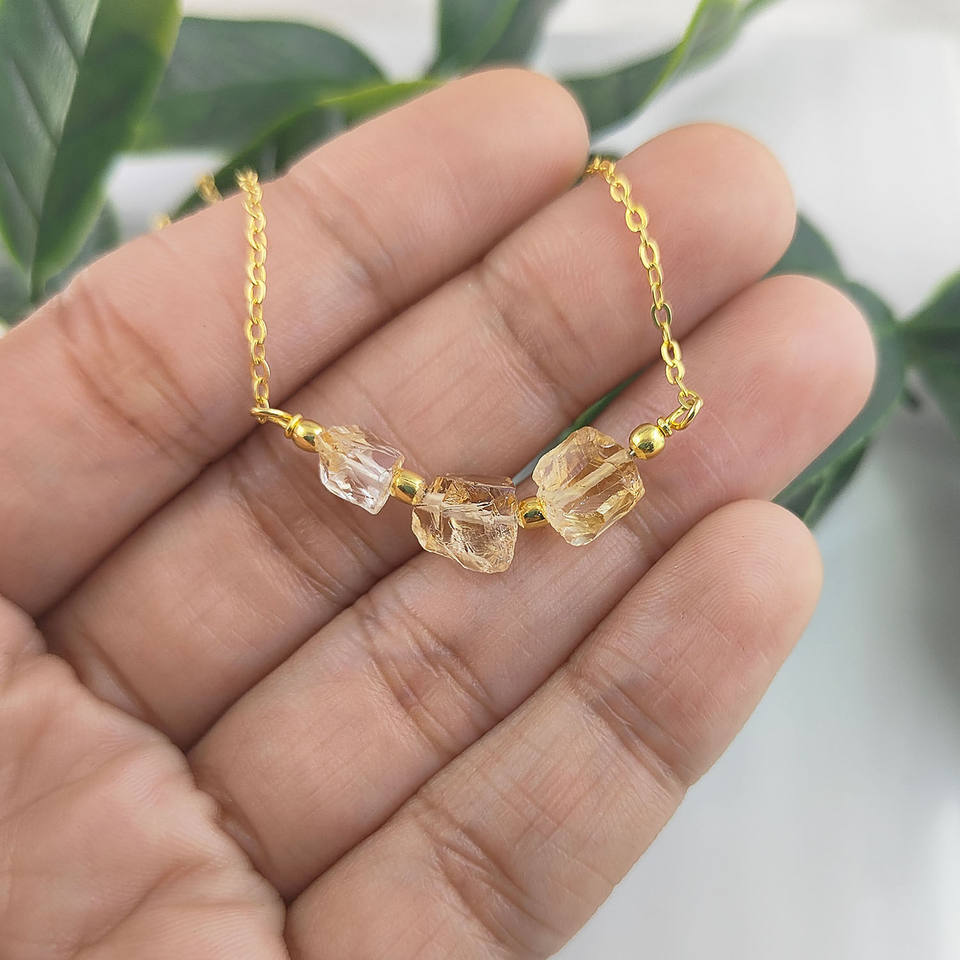 Venta al por mayor personalizable energía equilibrio moissanita collar piedra natal encantos áspero citrino curación Chakra collar de piedras preciosas