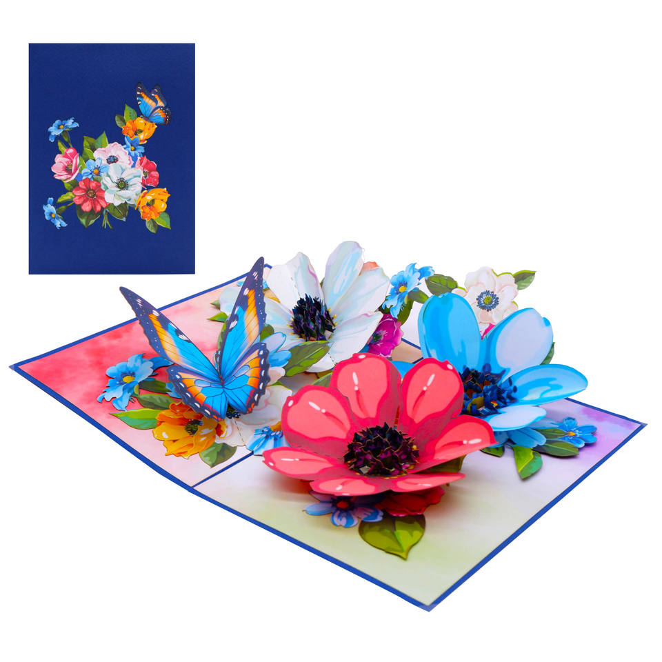 Tarjetas de Felicitación Pop-up 3D Hechas a Mano Personalizables al por Mayor, Impresión Offset de Flores Coloridas para Bodas