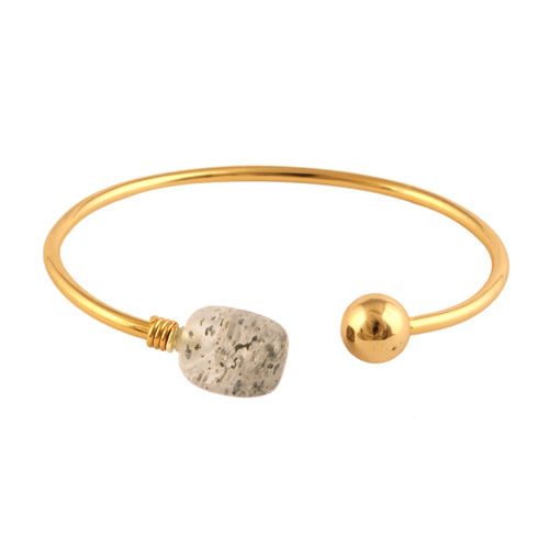 Venta al por mayor de brazalete personalizable de cuarzo punto natural ajustable Latón chapado en oro brazalete de piedras preciosas en forma de caída moda