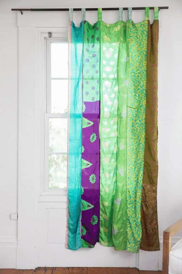 Cortinas de Seda con Parches de Sari Vintage Personalizables al por Mayor | Cortinas Bohemias Hechas a Mano Ecológicas para Ventanas Francesas con Luz Total